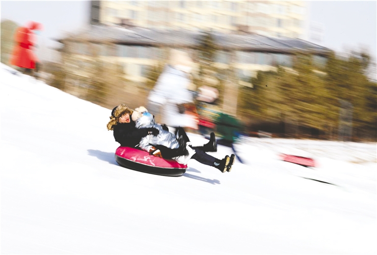 1月25日,人们在锡林湖滑雪场上体验速度与激情。在大年初四这一天,不少市民走出家门,带着孩子到滑雪场游玩。春节假期,锡林浩特市各滑雪滑冰场人气兴旺,大家在冰天雪地里享受着悠然假期。本报记者 巴依斯古楞 摄