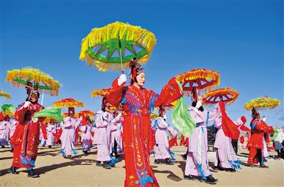 呼和浩特市新城区恼包村文化广场,恼包村秧歌队表演大秧歌。文/图 张平义