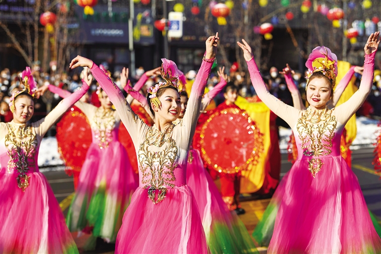 | 2月5日,新疆塔城地区额敏县群众在表演社火。当日是农历正月十五元宵节,各地开展丰富多彩的闹元宵活动,人们在祥和喜庆的节日氛围中迎接元宵节的到来。 新华社记者 胡虎虎 摄 |