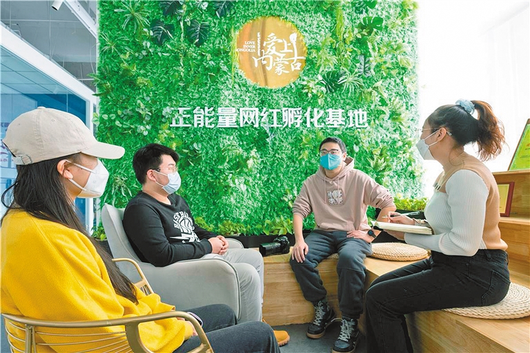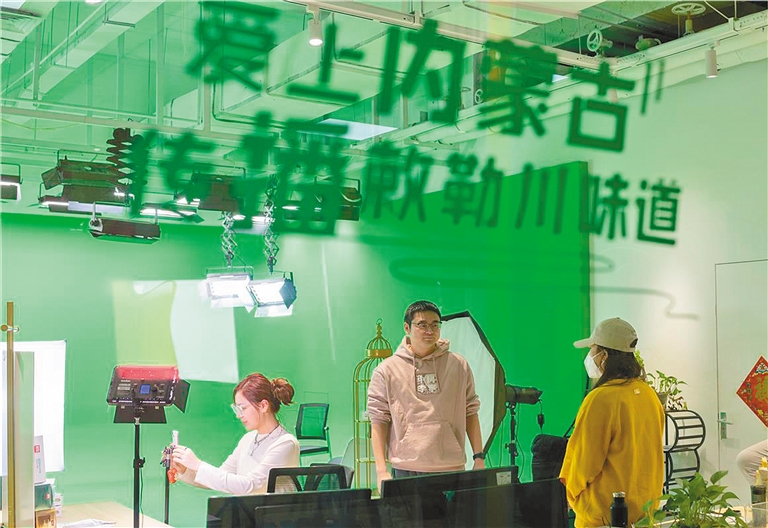走进呼和浩特市金桥电子商务产业园二楼的“爱上内蒙古正能量网红孵化基地”,首先映入眼帘的,是摆满兴安盟大米、燕麦米、高原杏仁露等产品的内蒙古味道展台。这里,既是内蒙古味道走出内蒙古的一个起点,更是像张舟一样的内蒙古“网红”们梦想开始的地方。