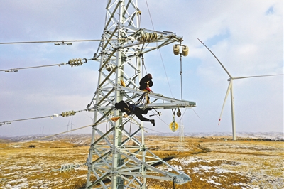 2月10日,国电电力达拉特旗“黄河流域生态保护和高质量发展”20万千瓦风电项目正在建设中。该项目位于达拉特旗昭君镇,建成后预计每年可向电网提供5.2亿千瓦时的绿色电能,节约标准煤17.86万吨,减少二氧化碳排放量43.29万吨。本报记者 王晓博 王鹏 摄