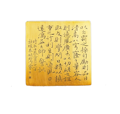 身穿一身宽大太极服的杜峻说,铜器在古代是珍贵的器物。铜刻是直接在非铸造铜器平面镌刻的工艺,以阴文刻、阳文刻及双钩浅刻为主要造型手法,最早起源于春秋战国的汉族錾铜艺术,用于记录当时的社会历史、人文景观、重大事件、人物传记等。