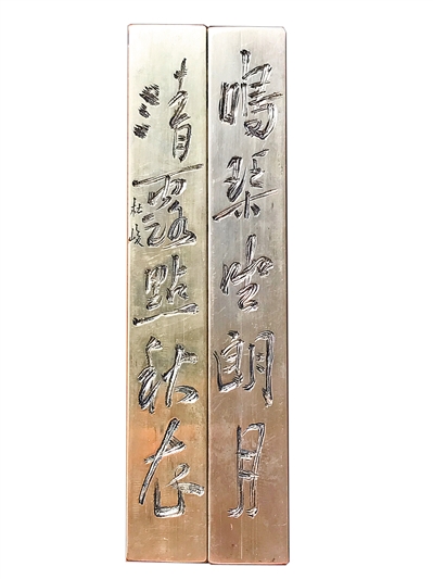 “由于铜器耐氧化,可以上千年不变,所以为后世留下了宝贵的历史资料。”杜峻说,近代刻铜源自錾花,至明而清,錾刻日渐成熟进入兴盛期,刀刻如写,刻铜逐渐成为一门独立艺术。