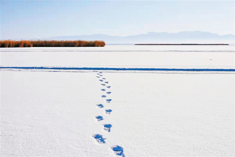 乌拉特前旗乌梁素海,远山如黛,芦苇静立,湖披银装,诗意盎然。 文/图 夏皑峰