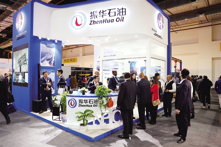 2月13日,人们在埃及开罗举行的石油展览会上参观中国振华石油控股有限公司展台。第六届埃及石油展览会15日在埃及首都开罗落下帷幕。展会期间,中国企业展台吸引众多参观者,有望与中东北非地区油气企业进一步加强合作。 新华社发