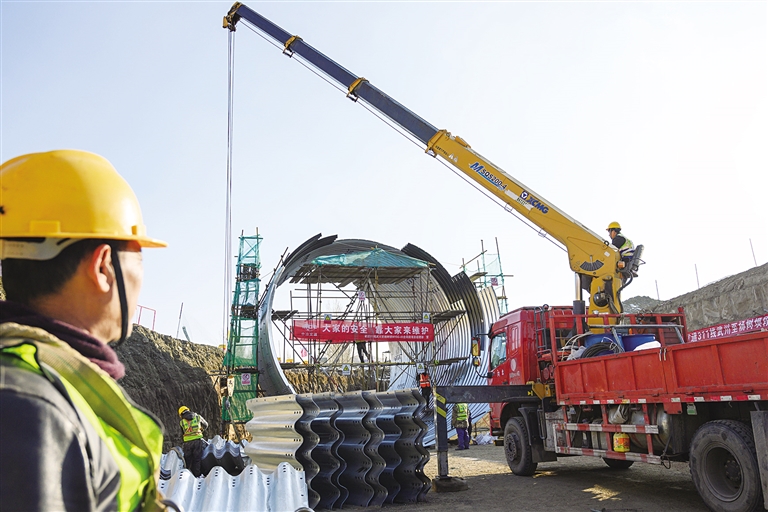 2月16日,工人在位于呼和浩特市境内的省道311线武川至杨树坝段公路项目段进行施工。该项目是自治区及呼和浩特市在建重点项目,2月15日正式复工。项目建成通车后,将改善区域交通状况,提高公路运输能力,促进沿线地区经济社会发展和乡村振兴。 本报记者 怀特乌勒斯 摄