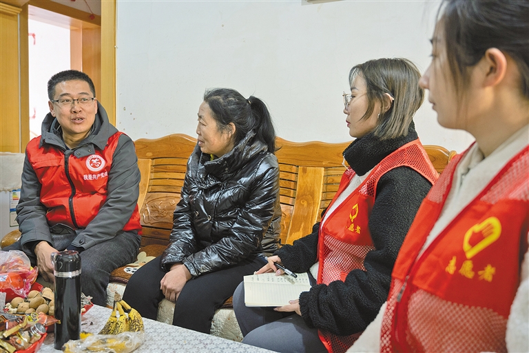 2月20日,在呼和浩特市玉泉区大玉石巷社区,社区工作人员来到居民家中走访交流。当日,呼和浩特市玉泉区委组织部开展“荷香带教”实践活动。活动现场,社区党组织书记为新入职社区工作的大学生代表交流分享工作经验,以“传、帮、带”的形式,提升新入职大学生的基层工作能力,积极解决群众的急难愁盼,着力锻造一支“想干事、能干事、干成事”的社区干部队伍。