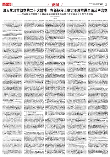 ~~~——在中国共产党第二十届中央纪律检查委员会第二次全体会议上的工作报告