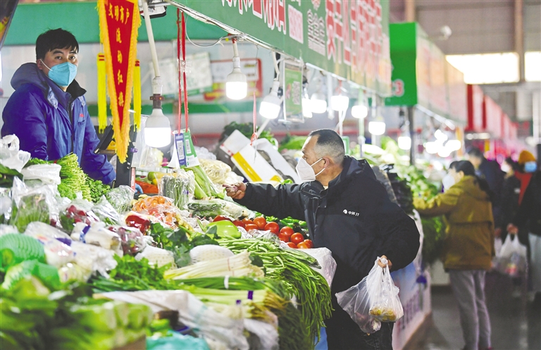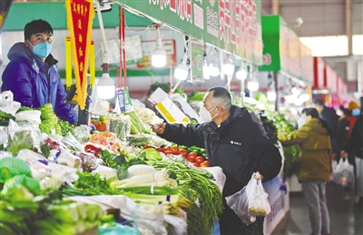 2月23日,呼和浩特市民在保全庄农贸市场购买蔬菜。近日,呼和浩特市商务局对16家生活必需品样本企业监测的数据显示,生活必需品市场货源充足、价格运行平稳,蔬菜类平均零售价格环比下降。预计后期受主产地价格、春季气候多变和市场供求影响,呼和浩特市蔬菜价格将在合理区间涨跌波动运行。本报记者 王磊 摄