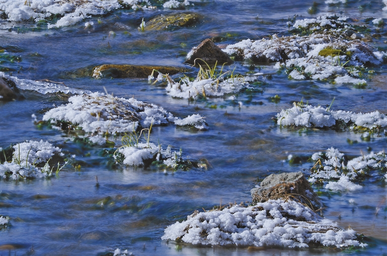 阿鲁科尔沁旗巴彦温都尔苏木,河中绿草挂着寒霜,却显生机盎然。 文/图 姚晓鑫