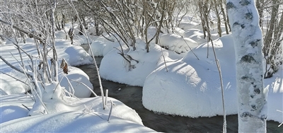 西乌珠穆沁旗古日格斯台国家级自然保护区,皑皑白雪包围的小溪流水涓涓,令人叹为观止。 文/图 白音孟克