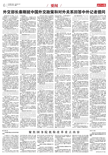 外交部长秦刚就中国外交政策和对外关系回答中外记者提问