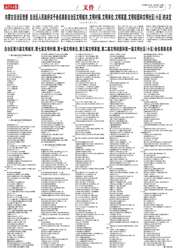 自治区第六届文明城市、第七届文明村镇、第十届文明单位、第三届文明家庭、第二届文明校园和第一届文明社区(小区)命名表彰名单