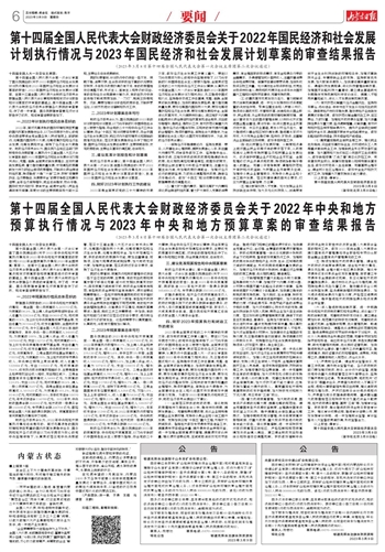第十四届全国人民代表大会财政经济委员会关于2022年国民经济和社会发展 计划执行情况与2023年国民经济和社会发展计划草案的审查结果报告