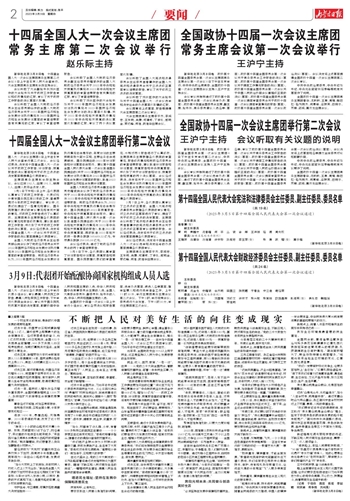 十四届全国人大一次会议主席团常务主席第二次会议举行