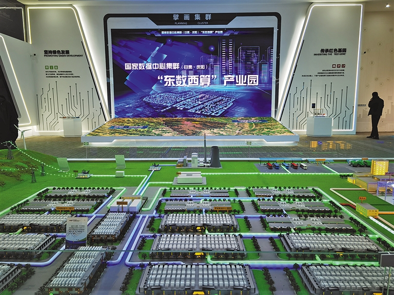 在“东数西算”庆阳基地,算力中心调度项目、数据中心项目、天翼云西北节点项目等加紧建设;展示中心内,未来的数据中心规划沙盘前围满了前来考察的企业家;“东数西算”产业园区内,中国能建甘肃庆阳“东数西算”智慧零碳大数据产业园示范项目等已火热铺开。