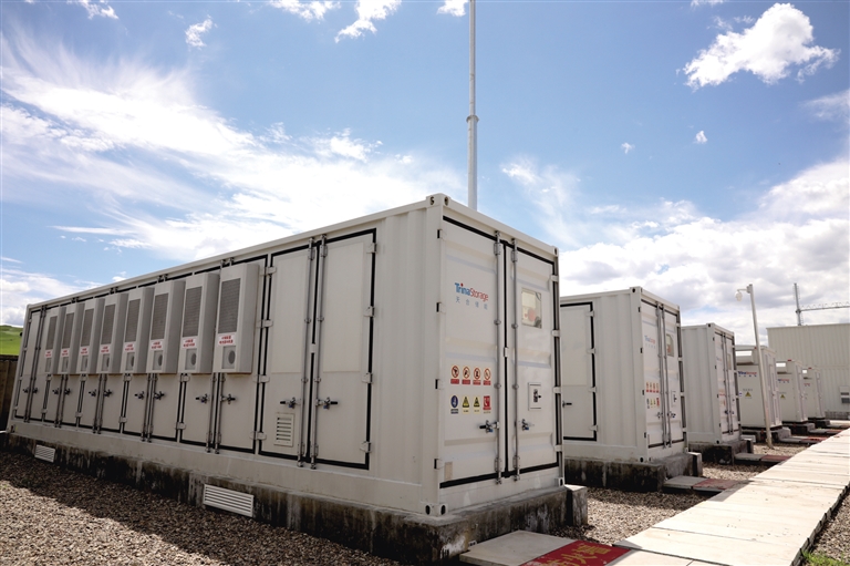 “华能高力板‘风光储’一体化治沙100兆瓦光伏发电项目于2020年9月23日开工,首个发电单元于2020年12月19日并网发电。项目建设完成后,平均每日发电量约为45万千瓦时,年发电量可达到1.65亿千瓦时,通过高舍线、高右线送入蒙东电网。”高力板风电场场长助理王冲介绍,该项目占地面积3600亩,建设于高力板风电场区域内盐碱荒漠地区,在建设发电项目的同时,同步推进绿化工作。在项目区播种草籽可以起到防风固沙的作用,在太阳板的遮挡下,土壤的水分还能够有效减缓蒸发,在水分的涵养下,区域内荒漠地变成了绿草地,有效改善了当地生态环境。