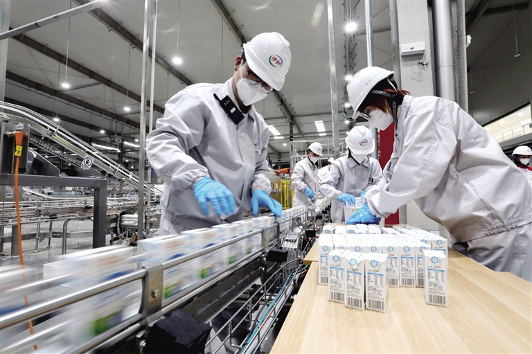 走进内蒙古兴安伊利乳业有限责任公司生产车间,工人们正在生产线上有序操作,经过标准化、超高温、无菌灌装等环节,一盒盒在商超中可以购买到的精装纯牛奶从兴安盟奶源地生产而成。