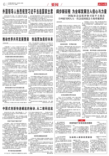 ~~~——国际社会高度评价习近平主席在十四届全国人大一次会议闭幕会上的重要讲话