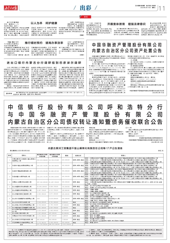 中国华融资产管理股份有限公司 内蒙古自治区分公司资产处置公告