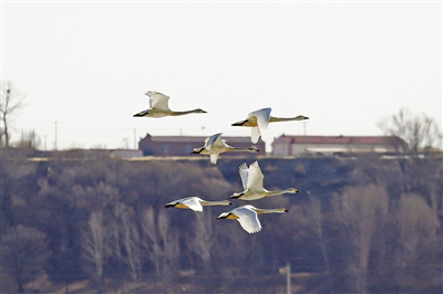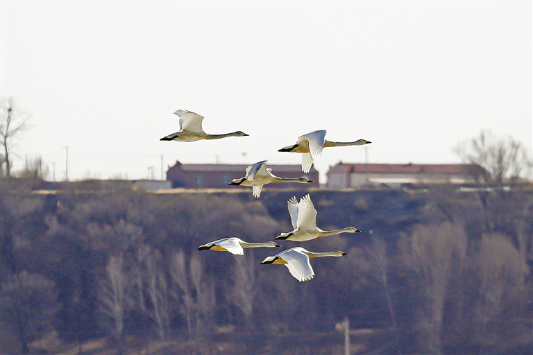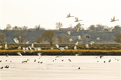 3月的呼和浩特市托克托县,冰雪开始融化,大地渐渐润泽,天鹅等候鸟开始大批飞回,在蓝天下,在碧波里,引吭高歌,盘桓嬉戏。