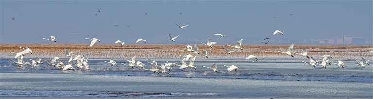 一群天鹅在巴彦淖尔市临河黄河湿地嬉戏。文/图 段忆河