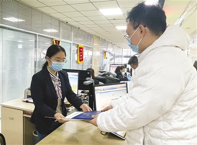 3月16日,创业者张义杰在呼和浩特市人力资源和社会保障局政务服务窗口办理创业担保贷款。为更好落实稳就业、保就业,以创业促就业,呼和浩特市人社局优化服务、提高办事效率、加强创业贷款担保政策的普及力度,为广大创业者提供更有力的资金支持。见习记者 杨林枝 摄