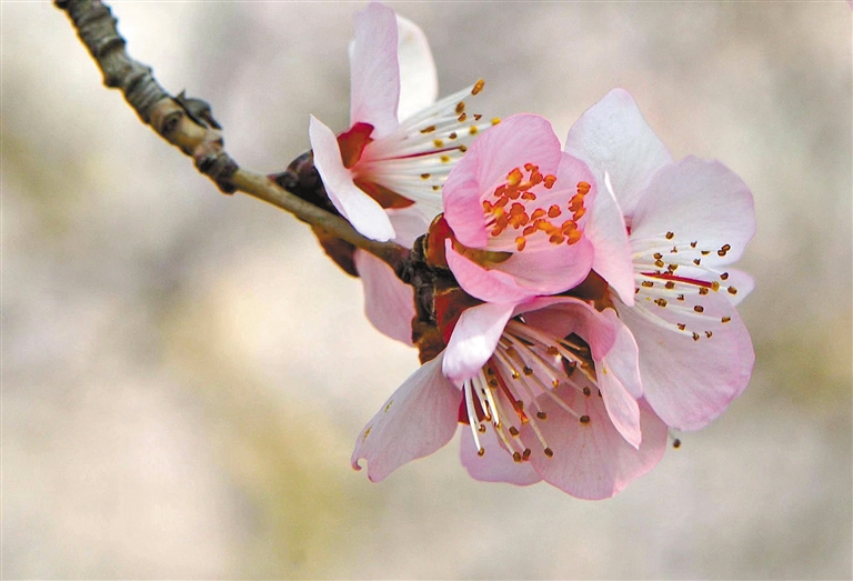 “唐代文学家刘禹锡的《竹枝词九首·其九》:‘山上层层桃李花,云间烟火是人家。银钏金钗来负水,长刀短笠去烧畲。’”高金贵说,在刘禹锡的笔下,春天就是一个把花穿在身上的少女,她穿过茂密花丛深处,看喜鹊衔泥筑窝,她唤醒晨光中睡眼惺忪的小河,泛起涟漪朵朵,这是多么美的景象,春气调和,万物新生,此时,正是我们踏青赏春的好时节,走出户外,感受春天的气息,春天里有花瓣飘落,随春水慢慢东流,有花骨朵含苞待放,生机勃勃,穿行花丛间,感受生命传承的美好。