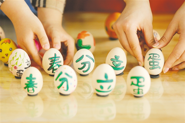 3月20日,在山东省临沂市沂南县第二实验幼儿园,小朋友在体验“立蛋”。3月21日是春分节气。这一天,我国民间有立蛋习俗。新华社发