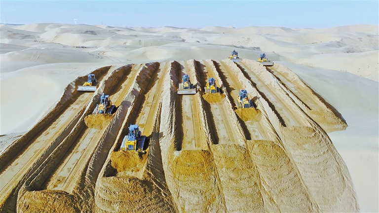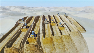 近日,大型施工机械在库布其沙漠鄂尔多斯中北部新能源基地先导工程“标准地”建设现场进行场平工作。库布其沙漠中北部新能源基地100万千瓦“先导工程”项目是沙漠、戈壁、荒漠地区开发建设的全球最大规模风电光伏基地项目,并配置相应储能,现已完成场平工程4700亩,预计今年6月底完成场平。该项目对促进能源清洁低碳转型、推动经济社会发展绿色转型具有重要意义。