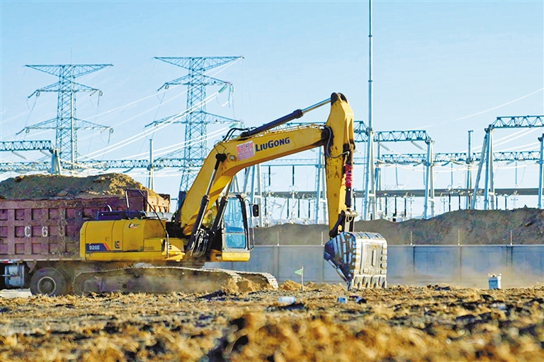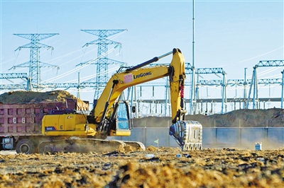 3月20日,工人在锡林郭勒超高压供电公司宝拉格变电站升压施工现场紧张施工。宝拉格500千伏输变电工程总投资近3亿元,计划于今年10月竣工投产。2023年,锡林郭勒超高压供电公司3项电网工程项目计划总投资6.5亿元,3项电网工程建成投产后,将实现锡林郭勒500千伏电网环网运行。本报记者 王晓博 摄