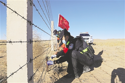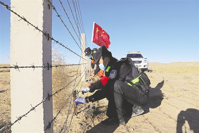 近日,乌兰察布边境管理支队组织开展“雷霆”集中统一行动,采用 “步巡+车巡”的方式深入边境一线重点地段巡逻踏查,并对破损物理阻拦设施进行了修复。 张冬 摄
