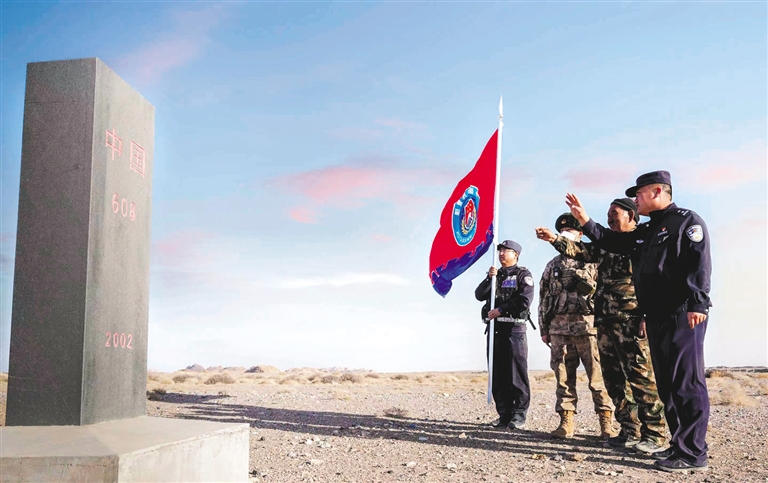 为进一步加强边境一线管控力度,近日,阿拉善边境管理支队与中国人民解放军某边防连队和护边员共同开展边境管控联防、联勤、联控系列活动。 牛鑫 摄