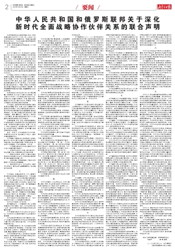 中华人民共和国和俄罗斯联邦关于深化 新时代全面战略协作伙伴关系的联合声明