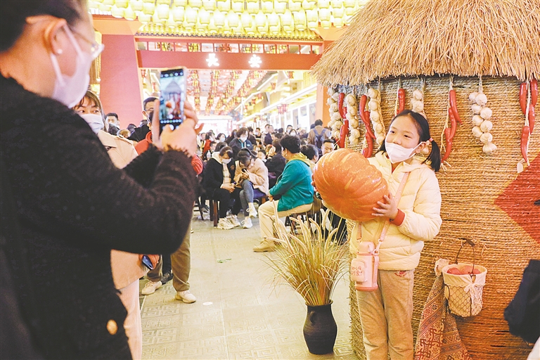 3月25日,小游客在“黄河食渡文化夜市”拍照留念。一段时间以来,兰州持续打造夜间经济多元消费场景,不断丰富夜间经济消费业态。最近,集丝绸之路饮食、歌舞、时尚及历史等元素为一体的网红特色主题夜市“黄河食渡文化夜市”开市,吸引众多市民和游客。新华社记者 方欣 摄