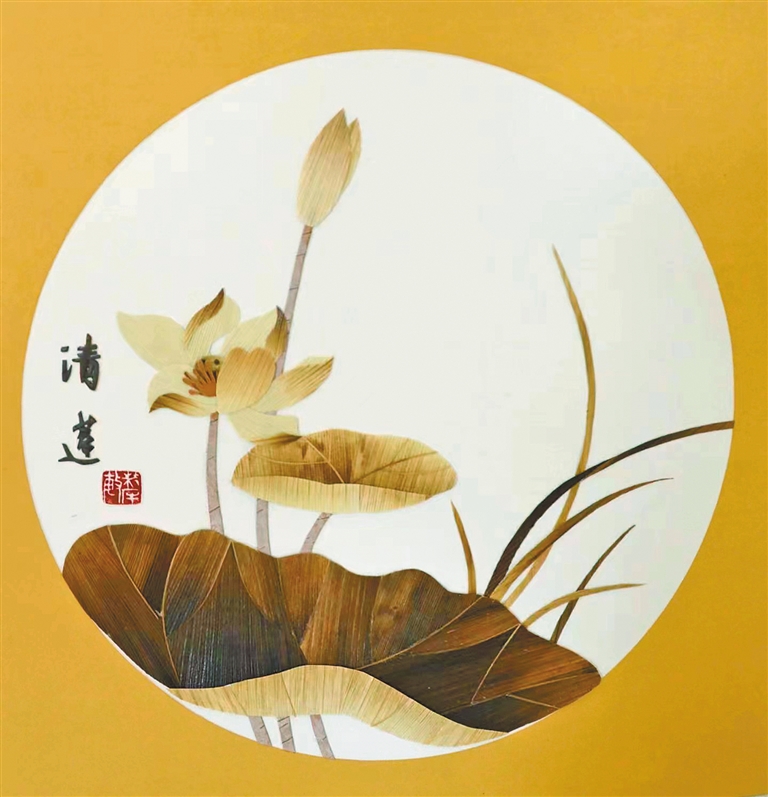 这就是玉米皮粘贴画,大千世界的山川河流、人物花草、鱼虫虾蟹等万千姿态,都可以活灵活现地用玉米皮展现出来,散发出像国画一样的大气神韵,给人以自然古朴、淡雅清幽之感。