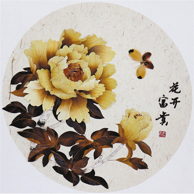 “山东莱州、滨州和辽宁绥中等地的移民带来了玉米皮编织技艺,在融合发展中,慢慢形成了玉米皮粘贴画,在林西县已经有110多年的历史了。”林西县玉米皮粘贴画非遗传承人任慧敏说。