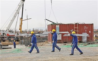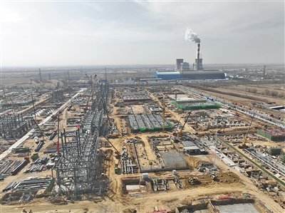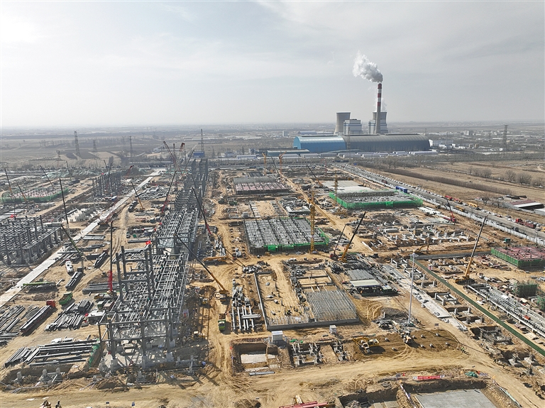 在赛罕区鑫华1万吨半导体级多晶硅项目建设现场,施工队正在组装18个项目装置,共有16个作业面。