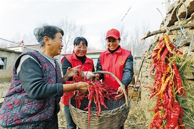 兴安盟科右前旗厚植乡村振兴组织优势,通过强内力、增实力、聚合力、展魅力、焕活力、添动力“六力齐发”,把党建促乡村振兴落实落细。图为俄体镇双胜村党员志愿者近日帮助农户晾晒辣椒。 时秀霞 摄