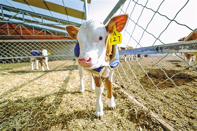 养殖场管理员张文涛喜滋滋地介绍道:“眼前的这些胚胎移植牛犊的形体跟普通牛犊是有差别的,它们毛色好、耳朵长,骨架也大。第一批临产的有10头,现在已经生了4头,剩下的还分两个批次陆续生产牛犊。”