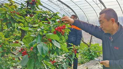在樱桃大棚务工的袁超华说,现在年纪大了,出去打工也不方便,在这里务工每个月有3500元的收入,工作不累,离家还近,妻子也在这打零工,每天也有100元的收入。像袁超华一样的固定工人有8个,而每年管护大棚需要的临时工能够达到2700多人,青龙山的樱桃大棚在发展特色产业的同时,也促进了群众就业增收。