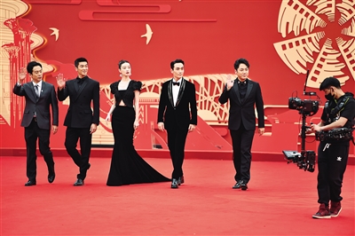 4月21日,《消失的她》剧组成员在红毯仪式上。当日,第十三届北京国际电影节开幕红毯仪式在北京市怀柔区雁栖湖国际会展中心举行。新华社记者 陈钟昊 摄