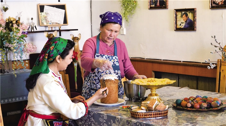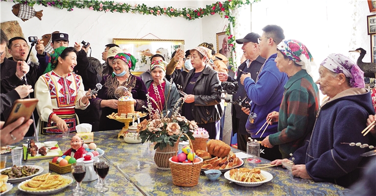 俄罗斯族一年中最盛大的节日“巴斯克节”日前在额尔古纳市恩和俄罗斯民族乡揭开序幕。当地民众穿起盛装,同慕名而来的游客载歌载舞,共庆节日,每个人都手拿彩蛋互撞,以示友好和祝福。