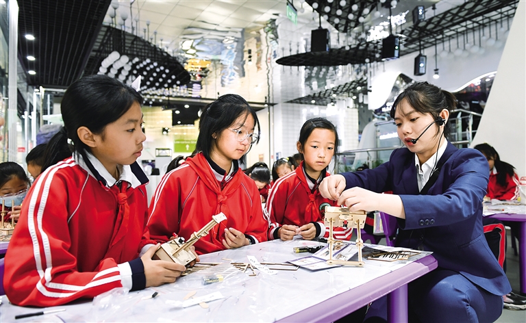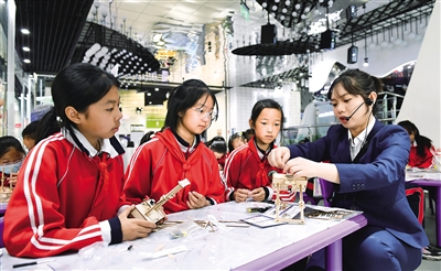 5月9日,在内蒙古科技馆,呼和浩特市南门外小学万达分校的学生正在制作地震报警器。今年5月12日是第15个全国防灾减灾日,日前,市民和学生走进内蒙古科技馆,了解地震灾害知识,学习防范应对基本技能,增强防震减灾意识,提升地震应急避险和自救互救本领。本报记者 孟和朝鲁 摄
