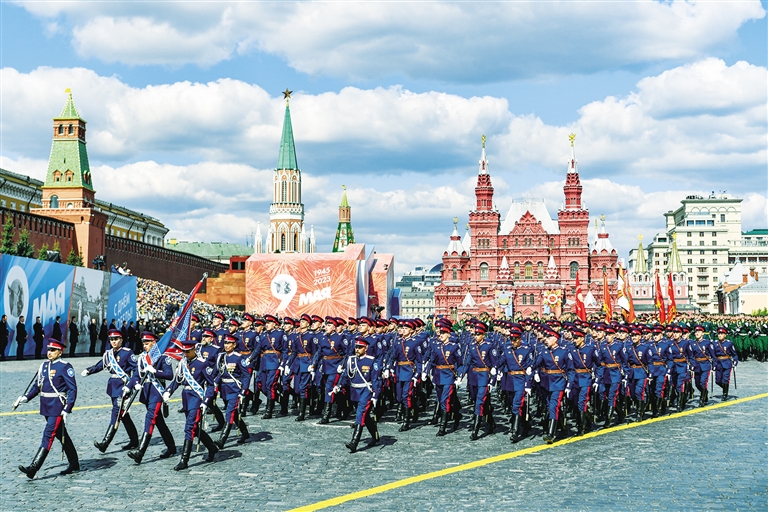 5月9日,在俄罗斯首都莫斯科,士兵列队走过红场。为纪念卫国战争胜利78周年,俄罗斯9日在莫斯科红场举行阅兵式,并在多地举行系列庆祝活动。 新华社记者 曹阳 摄