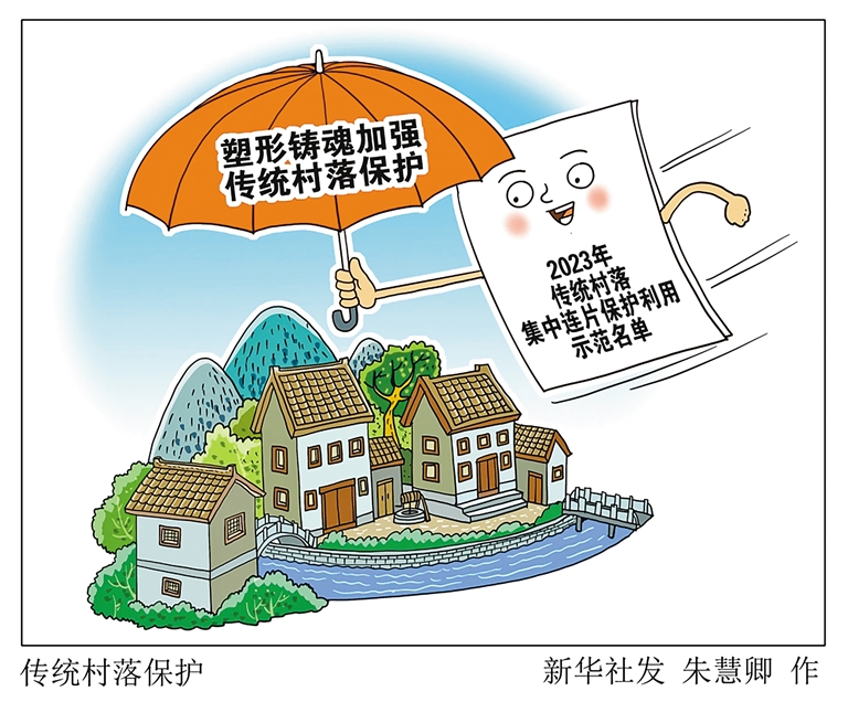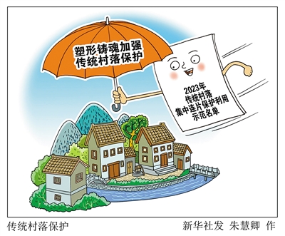 住房和城乡建设部、财政部近日公布2023年传统村落集中连片保护利用示范名单,并对相关保护和利用工作作出部署。传统村落保护,要置身于全面乡村振兴的历史进程中,既要塑村容村貌之“形”,也要铸农耕文明之“魂”,不断注入新时代精神,为中国式现代化提供文化支撑。新华社发 朱慧卿 作