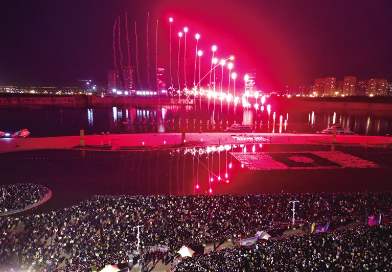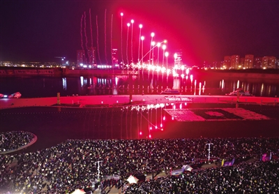 鄂尔多斯市康巴什旅游区推出的焰火喷泉表演深受游客喜爱。