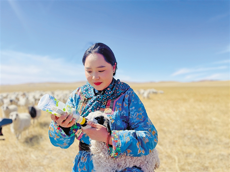 “我们家今年接了300多只小羊羔,平日里技术人员会上门指导接羔育幼、母羊产前产后饲养管理等技术,羊羔的成活率不断提高。”锡林郭勒盟东乌珠穆沁旗嘎海乐苏木巴彦宝拉格嘎查牧民赞丹花边喂羊羔边说。