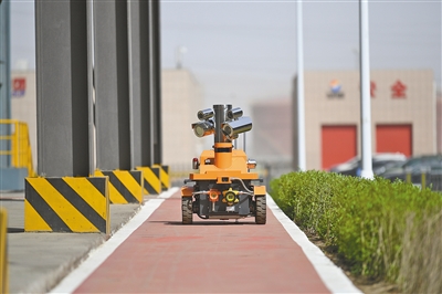 近日,在乌海市乌达工业园区内蒙古兴发科技有限公司智能工厂内,智能机器人正在巡检设备。内蒙古兴发科技有限公司加快转型升级步伐,大力推进智能化工厂建设,打造无人巡检、无人操作、无人记录,高度自动化智能化的“三无工厂”,实现一键启停全流程装置,提高了工厂整体运行可靠性。本报记者 孟和朝鲁 摄