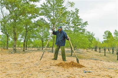 “我这一辈子只做了一件事,就是种树!”鄂尔多斯市鄂托克前旗城川镇呼和陶勒盖嘎查80岁的老人曹扎娃这样评价自己。又到一年中植树最繁忙的时候,身形瘦削的曹扎娃老人,扛着铁锹精神矍铄,他虽然年事已高,依然尽自己的能力到沙地里去栽树。